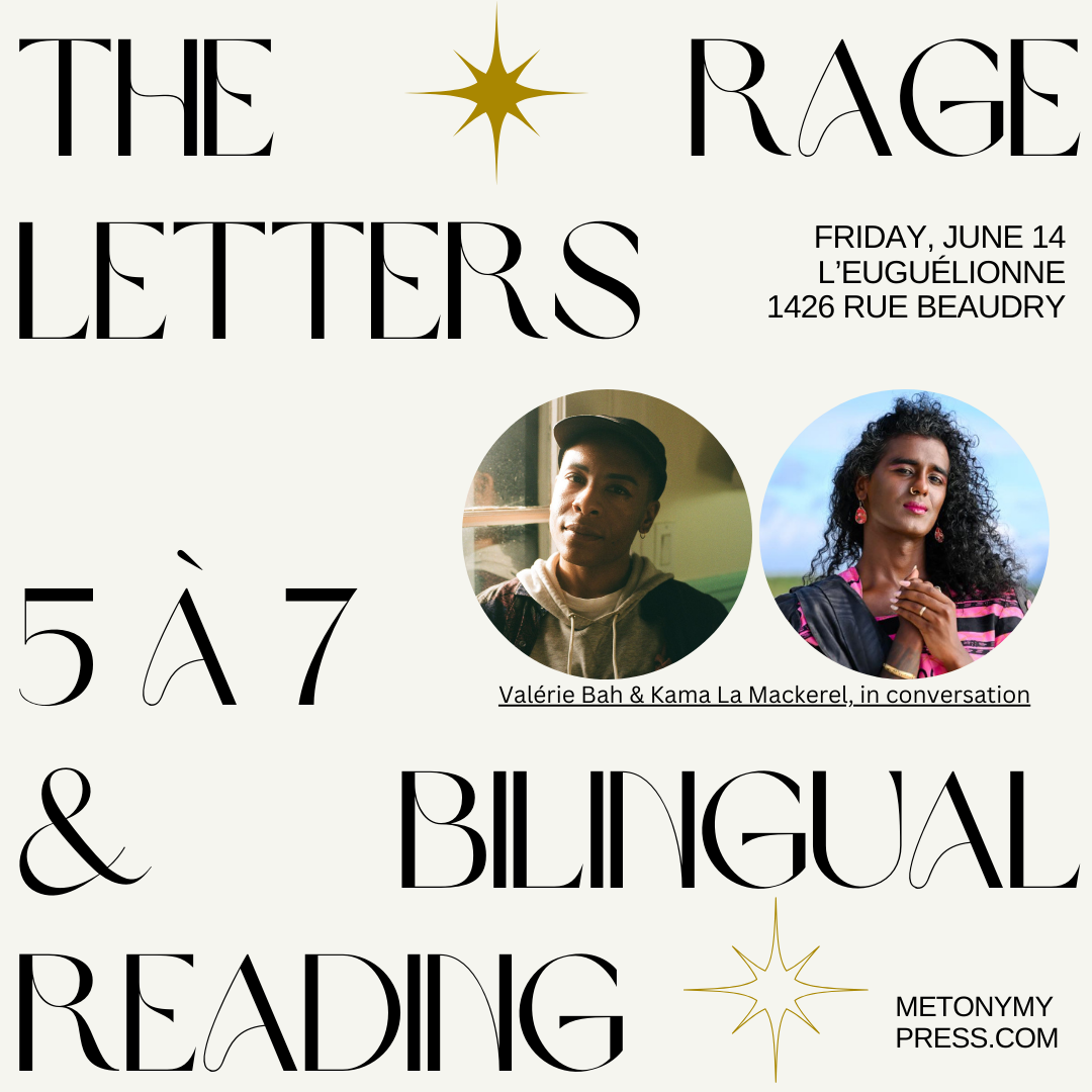The Rage Letters: a 5 à 7 get-together and bilingual reading
