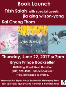 Bryan Prince Bookseller 1060 King Street W, Hamilton, Ontario, CanadaTrish Salah returns to Hamilton for the launch of the Canadian edition of Lyric Sexology, Volume 1.
