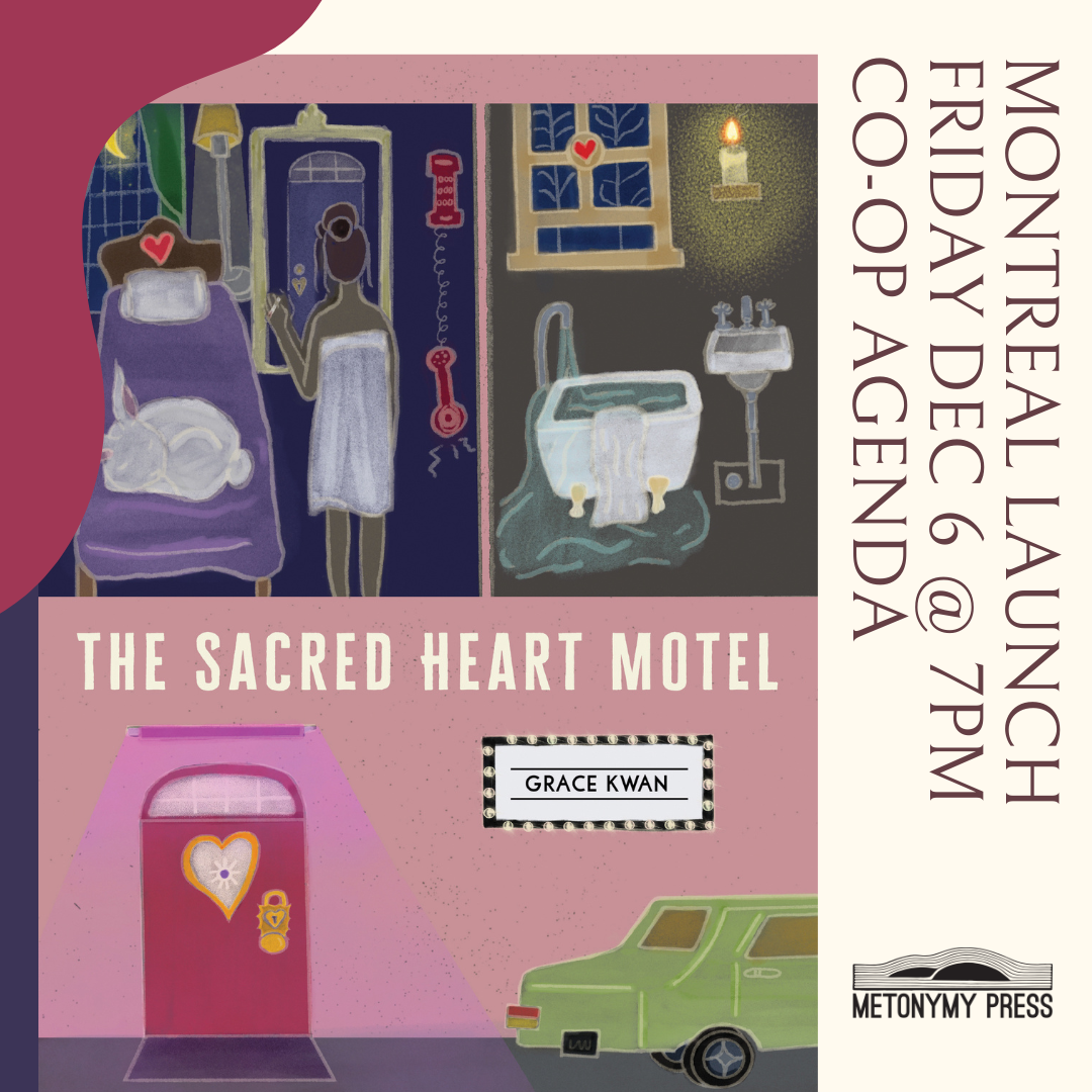 Join Grace Kwan for the Montreal launch of THE SACRED HEART MOTEL, taking place at Co-op Agenda in Petite-Patrie.